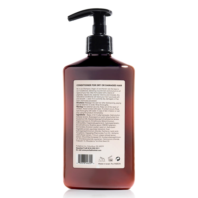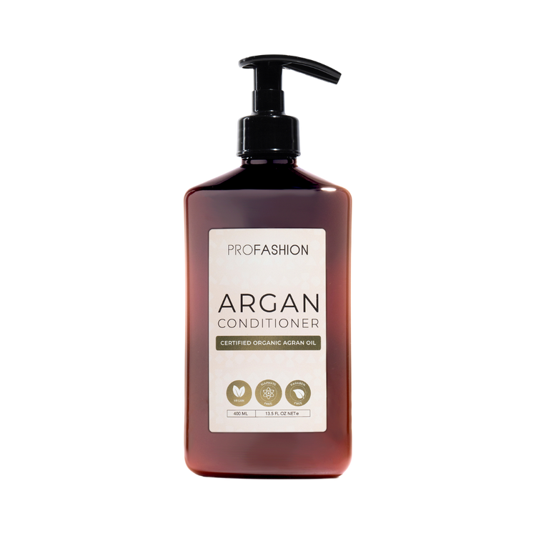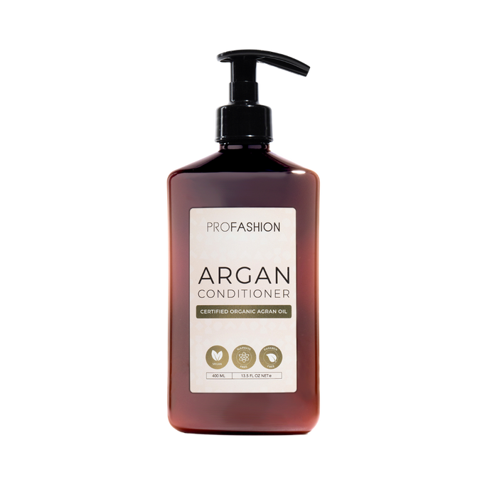 Profashion Argan Conditioner is a moisturizing conditioner for everyday use that is infused with antioxidant-rich argan oil and replenishing nutrients to hydrate and detangle damaged hair.